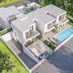 Modern villa with innovative features, state-of-the-art technologies and luxury. The villa of over 490 sq_m built, is designed according to the standards of luxury and contemporary aesthetics, with an open living space, elegant lines and a limited choice of colours based on natural, neutral and soothing tones and materials, with the aim of stimulating all the senses, creating security, emotional well-being and connection to nature through spaces and openings.