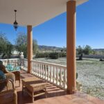 The villa over a single level blends comfort and style perfectly and is equally suitable as either a full time residence or wonderful 2nd home. It boasts not only a very good sized roof terrace/solarium but also a fantastic wrap around shady open fronted porch both of which afford stunning views over Almond groves and distant hills. A climate control system is installed but has been superceeded by the installation of high spec independant combi hot/cold air conditioning units, fly screens are fitted throughout and a beautiful neautral tiling scheme runs through the villa. Front door access off of porch leads into a a very good sized living room with additional double door access out to porch and a beautful marble surround fireplace. Arched access to righthand side of lounge flows beautifully into a seperate dining room ( that has door access out to raer terrace/bbq area) and on into the very good sized, recently refurbished, kitchen with Sile Stone work surfaces and ample light greay coloured floor and wall units ( all appliances to remain). On opposite side of lounge arched access leads into a hallway off of which you have the properties family/shared bathroom and three generous double bedrooms, all with fitted wardrobes, and the master benefitting from a en suite bathroom with full bath and overhead shower.