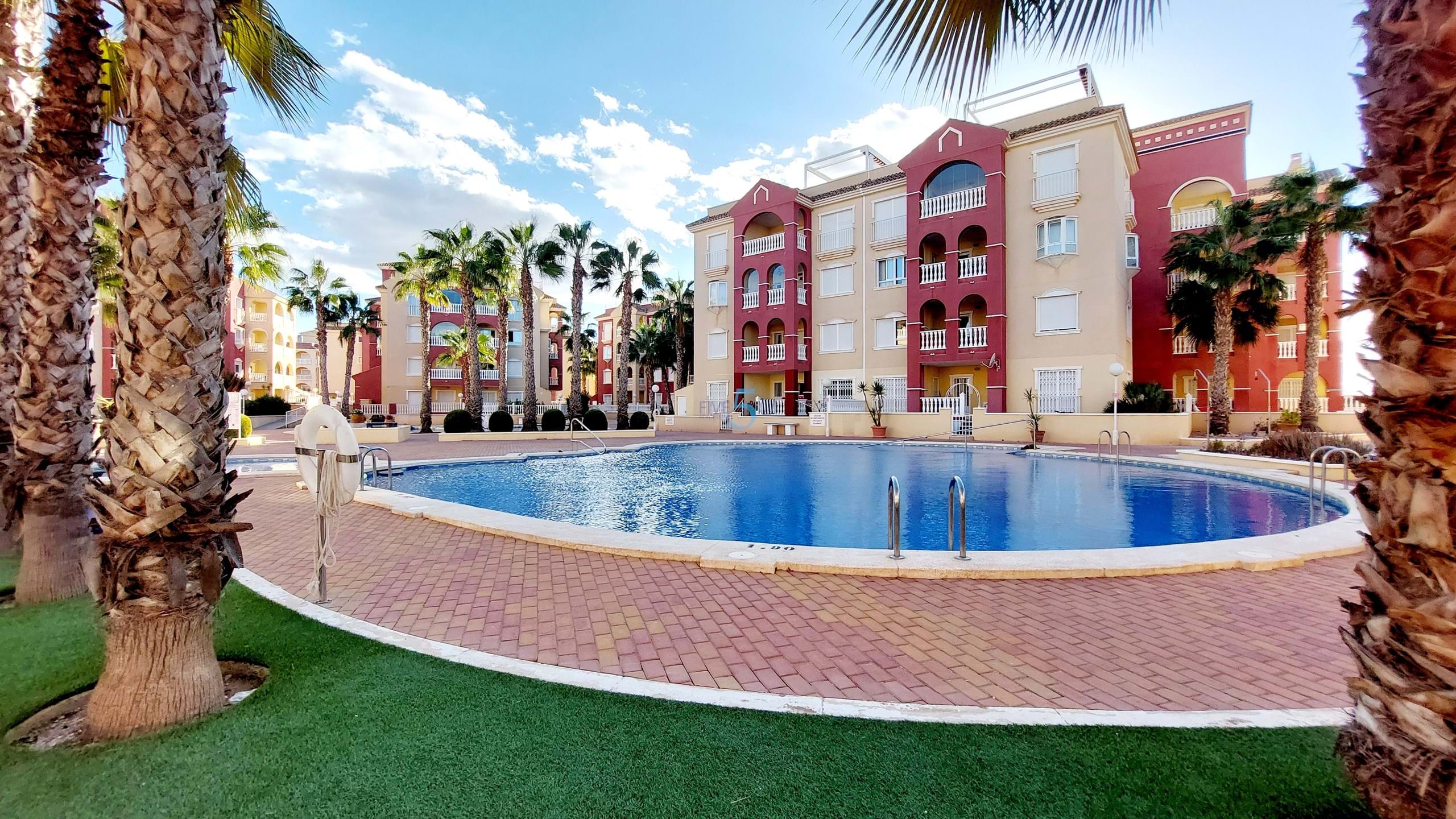 5 Real Estate are delighted to be marketing this great 2 bedroom 2 bathroom ground floor apartment with communal swimming pool in Los Alcazares.