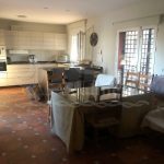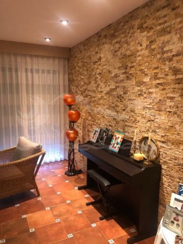 The lower part of the villa includes a separate living space with a living-dining room, a kitchen-bar with a wood-burning fireplace, a bedroom, and a bathroom. In addition, there is another building on the ground floor measuring 80 m², offering potential for various uses such as a studio, workshop, or storage area. The property also boasts a spacious plot of 5240 m² with private outdoor parking and a garden area featuring printed concrete and sleepers.