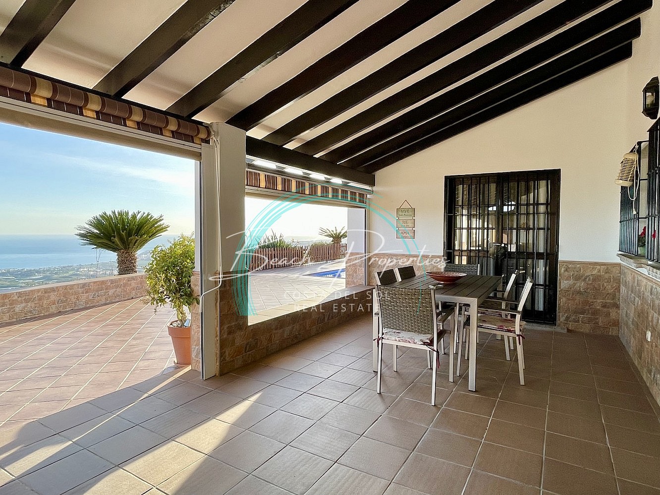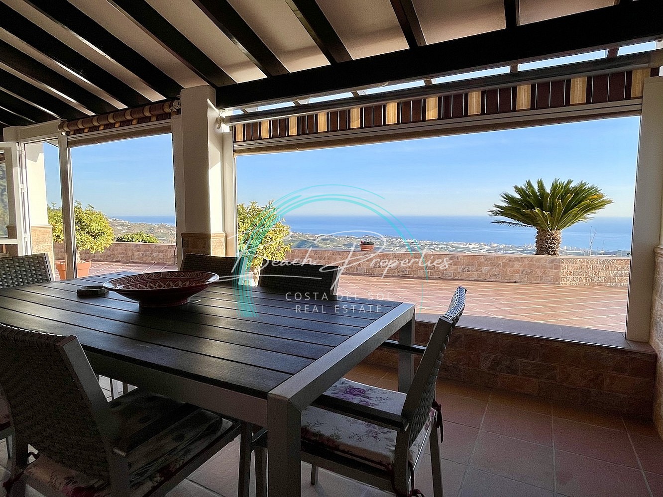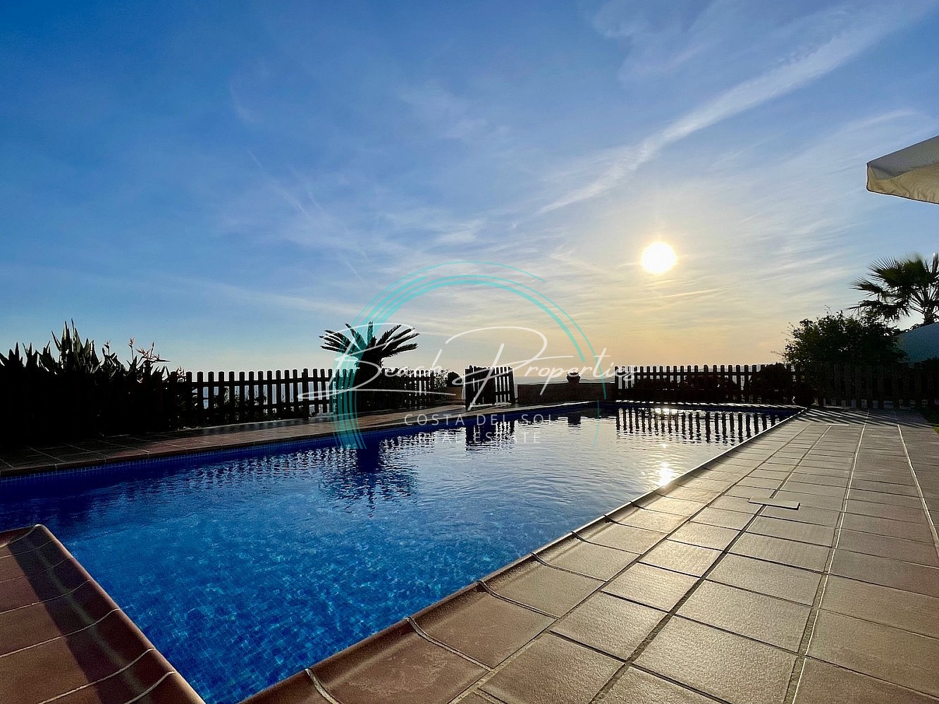 Discover stunning views from this beautiful villa, which you simply must see in person to appreciate it in its entirety. El Gigante is a complex of 18 houses in the countryside of Algarrobo. If you are looking for something quite spectacular with plenty of space, a sense of tranquility and only 10 minutes from the coast, this wonderful home is for you. There are three spacious bedrooms and two good sized bathrooms and a large living room with fireplace. Fully air conditioning throughout. This home has the best of both worlds with a large covered terrace and plenty of space for sunbathing around the pool. With an outdoor kitchen you can easily live both indoors and outdoors. This property also comes with some land and you can have your own orchard which already includes mature trees such as mango and lemon. The house also has a separate storage room as well as a 17m2 garage. In a sought-after prestige area overlooking Algarrobo Costa with stunning sea views. This well-kept Andalusian villa is in a prime location, with easy access to the village and is easily accessible by tarmac road along its entire route. The owners have decided to sell because they are of legal age and would like to sell it to someone who cares for and loves the property just as they and their family have done for over 20 years.