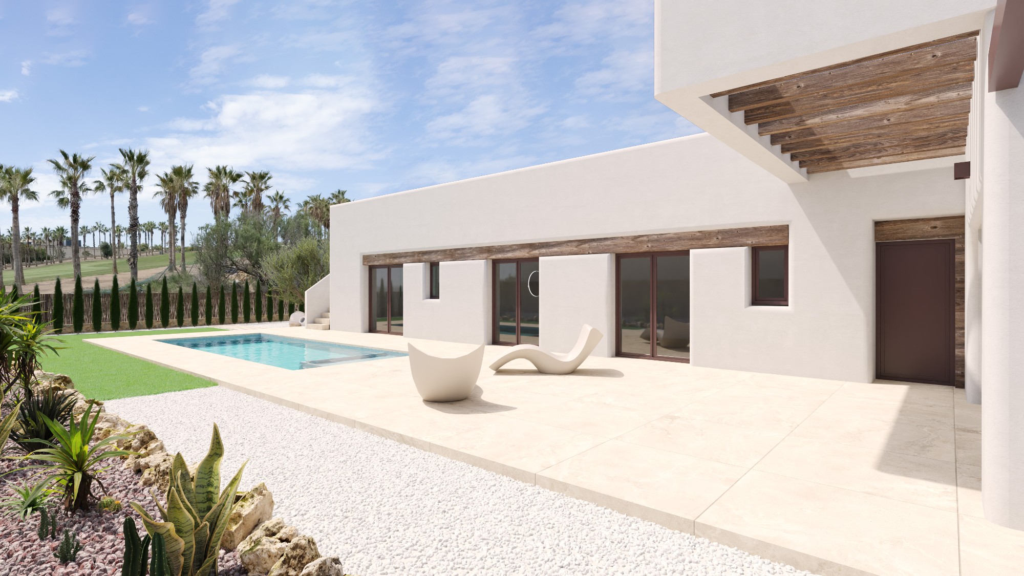 These contemporary villas, part of an exclusive project consisting of 7 homes, will be completed after a careful construction period of 15 months. The location and views of these villas are a dream for golf enthusiasts and anyone longing for an opulent Spanish lifestyle. The coast of Guardamar del Segura is just 20 minutes away by car, and Alicante Airport is approximately 43 km away.