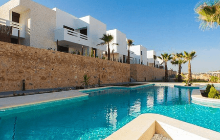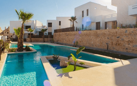 Los Lagos is a cozy residential area located in La Finca golf course, in Algorfa. La Finca is known internationally by golf lovers, as it has hosted numerous prestigious tournaments. It has well-equipped facilities including Club House, Spa Hotel, several shops and restaurants, and pharmacy. Its excellent access from the AP-7, it communicates with the airport of Alicante, in little half an hour; Or with the beaches of Guardamar and Orihuela Costa, in about 15 minutes.Los Lagos consists of bungalows on the ground floor with large gardens, or top floors with terrace and private solarium. You will be able to choose between several different distributions, which offer 2 and 3 bedrooms, 2 bathrooms, and a careful memory of qualities. This fantastic residential area has a nice communal area with garden and pool. If you want to live in a natural environment, do not hesitate to ask us for more information.