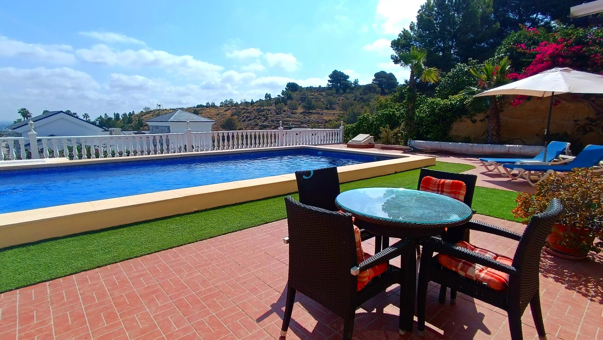 The private pool area (9.5m x 4.5m) is accessed either from the lower level of the property or via external paths on both sides of the villa. This elevated pool terrace offers uninterrupted open views across the surrounding countryside, ideal for soaking up the Spanish sun in peace and privacy.