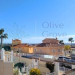 From the kitchen, a staircase leads to a versatile upper floor, ideal as a second lounge, home office, or entertainment room. This level opens onto a wraparound balcony, where you can soak up breathtaking views of the Mediterranean Sea and the Torrevieja salt lakes, making it a truly special space for morning coffee or sunset relaxation.