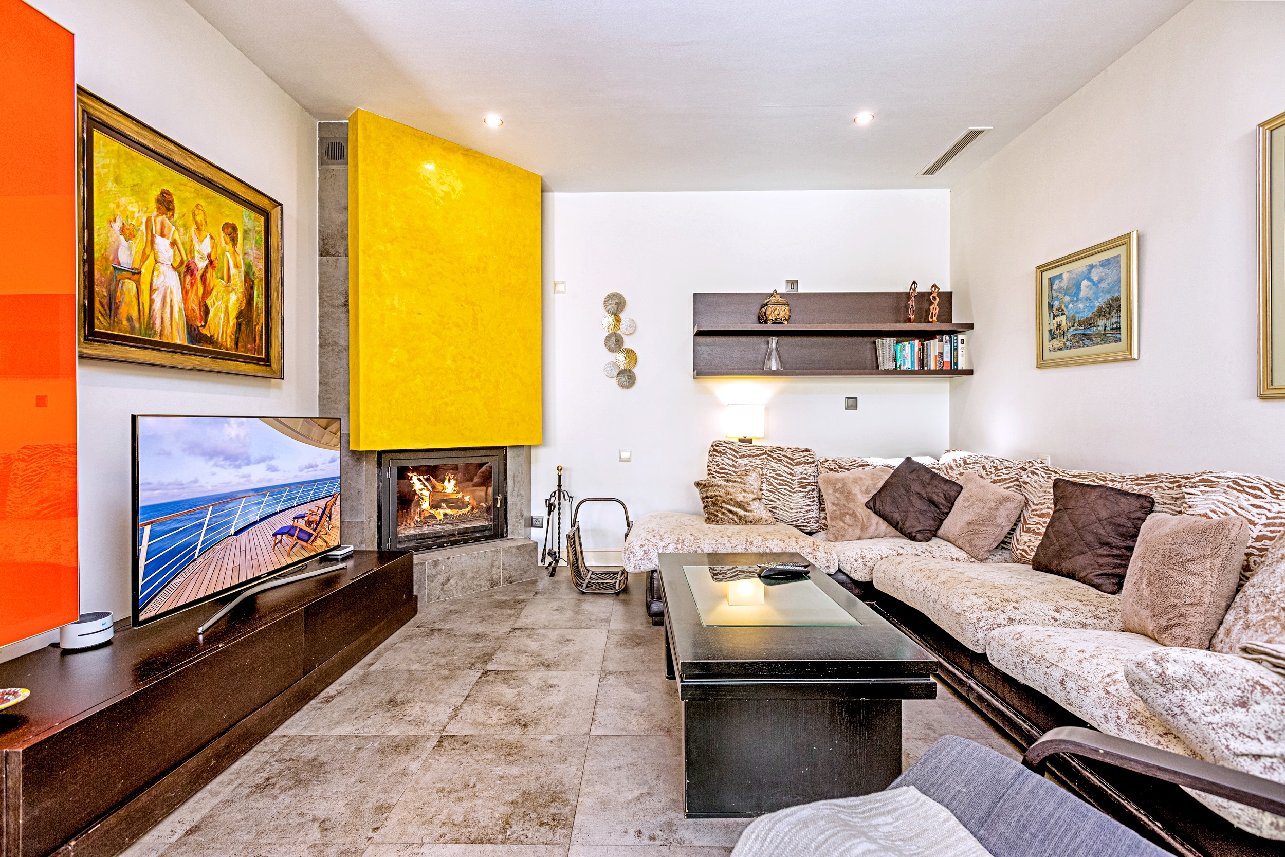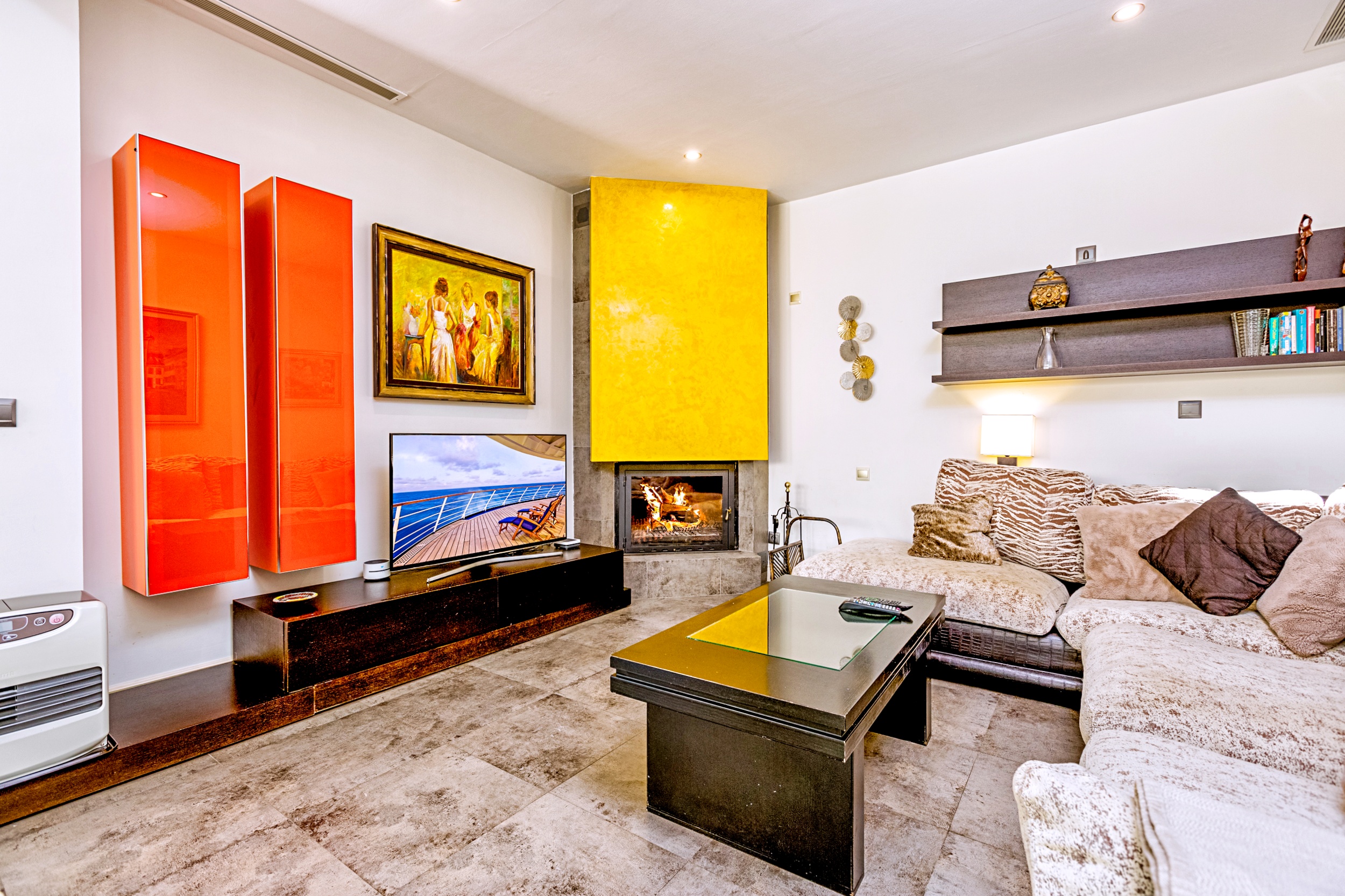 It has a fully equipped open plan kitchen integrated in a large living-dining room with fireplace, all in an open and bright space and with direct access to the barbecue area and terrace.