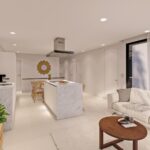 Modern properties with 3 bedrooms and 2 bathrooms, open plan kitchen with living area, fitted wardrobes, terrace, private garden and underground parking in the basement.