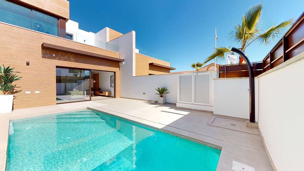 These villas built over 3 storeys, count with a wide and fully finished basement, on the ground floor we find the first bedroom and the first bathroom, a modern open-concept kitchen and the living area that opens to the pool through wonderful sliding doors.