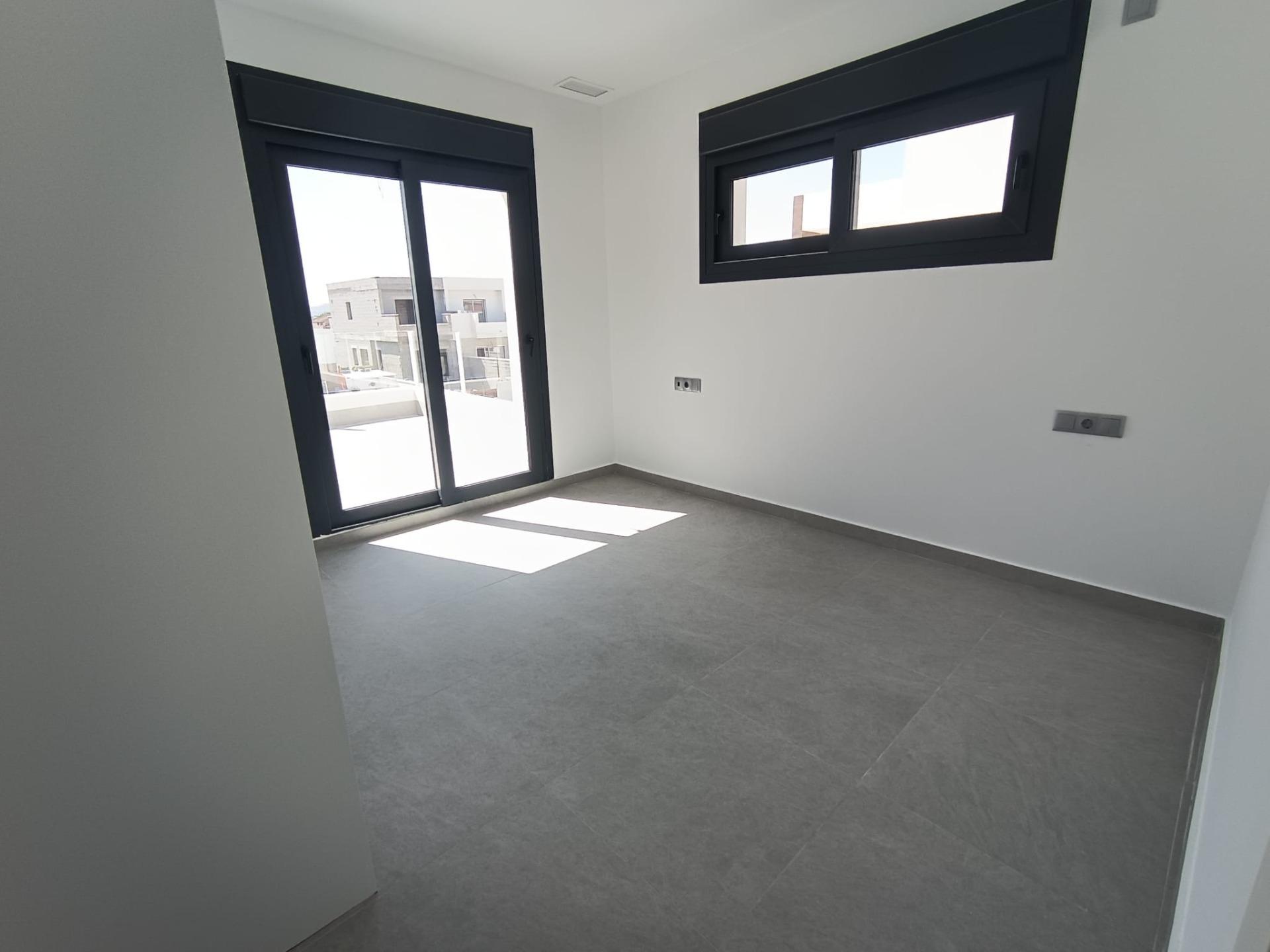 Newly built townhouses in the new part of Daya Nueva, just a few minutes' walk from the town center. 3 bedrooms, 2 bathrooms, private pool, and an 18m2 terrace with a pool. Open-plan dining/living area with a kitchen, bedroom with built-in wardrobes, ensuite bathroom on the ground floor, and on the first floor, 2 bedrooms, built-in wardrobes, and a bathroom.
