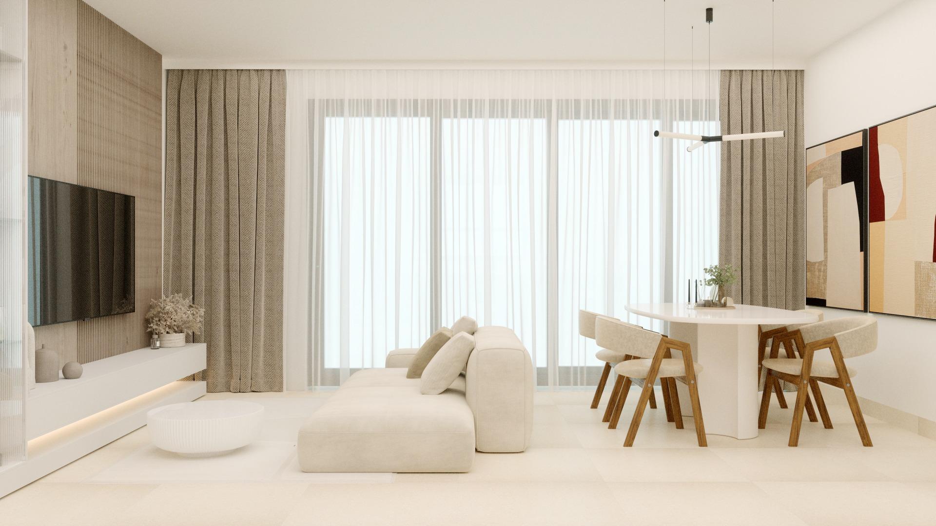 With a constructed area of 200 m2 and an interior living area of 141 m2, the villa is distributed over two floors. it has 4 bedrooms, 3 bathrooms, a spacious living-dining room, an open plan kitchen, a living room, as well as a pool area, terrace and balcony with panoramic sea views.