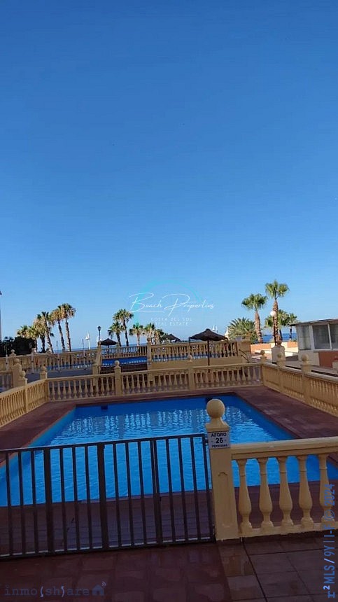 Apartment located on Paseo de San Cristobal, first line of the beach and facing the sea. Recently renovated, it consists of 64 m2 built and has 1 bedroom, 1 bathroom with shower, kitchen open to the living room with dishwasher, large living room with air conditioning, very bright with sea views and access to a magnificent and large terrace with awning. The urbanization has 3 communal swimming pools, as well as a tennis court and futsal. OPTIONAL * Parking space 55,000 * Storage room 20,000