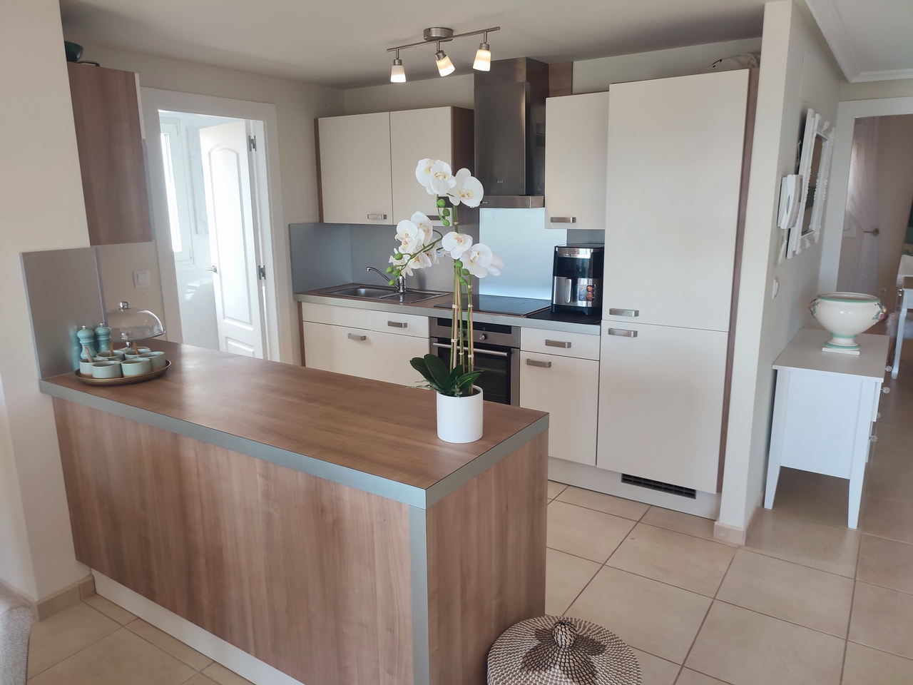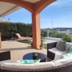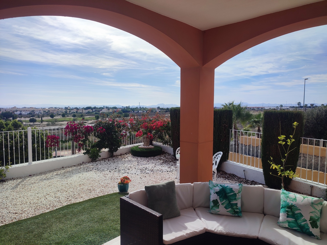 This apartment is on an elevated corner plot on Altaona golf & country village, great sunny garden of 105m2. Decorated in a modern design there is a large open plan kitchen and living area. 2 bedrooms, 2 bathrooms, (1 en-suite) utility room, big terrace and large garden.With beautiful views of mountains and golf course you also have access to a large communal salt water pool.The property is located in an urbanization at the foot of a mountain area called El Valle; with walking access to the path towards the mountains for hiking and biking lovers, a place where your children could play outside and ride their bikes on the street with no stress for you. The opening of the NEW CORVERA AIRPORT is having a great impact on the adjacent Resorts. The Club House and the 18 holes of the Golf course are already open.The location of this complex is ideal and very convenient, only: * 15 min. Murcia center * 20 min. Beach * 5 min. new airport * 8 min. new shopping center in La Alberca. *10 minutes. Hospital Arrixaca.