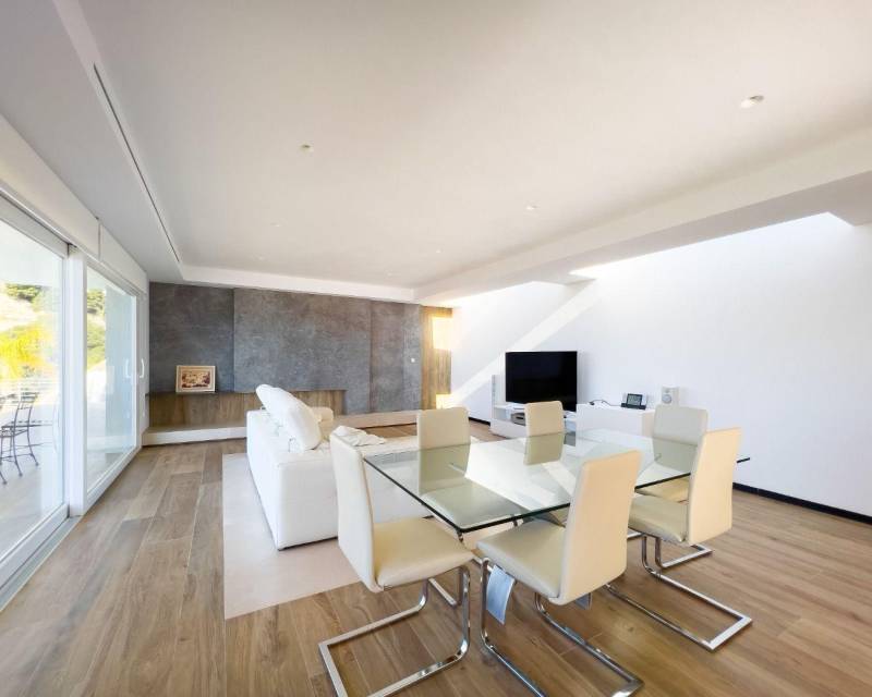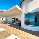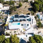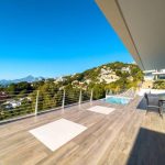 Modern 4-story villa for sale in a quiet green area of Altea, offering panoramic sea and mountain views. Built on a plot of 814 m², it includes multi