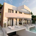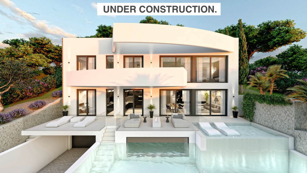 Beautiful new build villa for sale 500m from Don Cayo golf course, nicely located in a prestigious residential area around Don Cayo golf course. Altea 8min, 6km, Altea La Vella 1.6km, the A7 motorway is 2km. The villa will be built with 3 floors + a large roof terrace. On the ground floor is the garage of 136sq_m and a stairwell of 36sq_m with lift. On the first floor is the living space with open kitchen, a laundry room, a guest toilet, a bedroom with its ensuite bathroom. The living space, open kitchen and bedroom open onto a large terrace with a pool in 2 levels with a chill-out area. On the second floor there are 2 bedrooms with their own ensuite bathrooms, a master bedroom with its ensuite bathroom and a stairwell with lift. On the third floor there is a roof terrace of 136 sq_m and a stairwell with lift.The villa will be finished with (yet to be chosen) high-quality luxury materials with and equipped with the latest technologies.Construction will start in November 2023, the planned completion date is November 2024 (subject to change).
