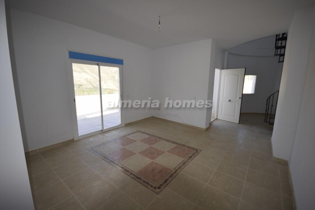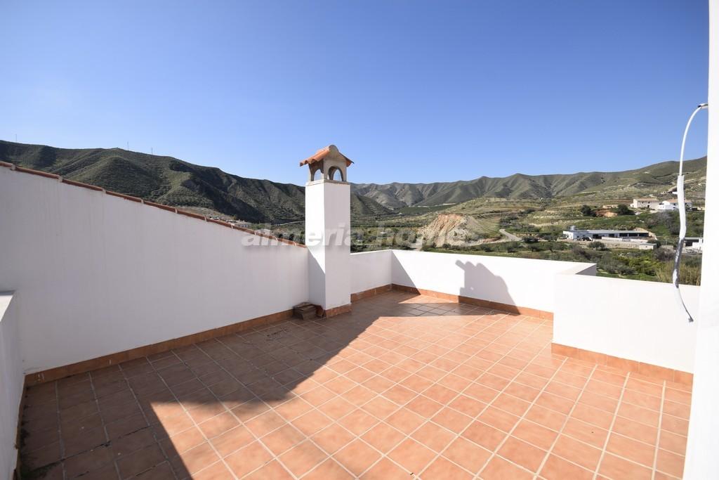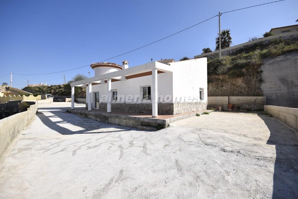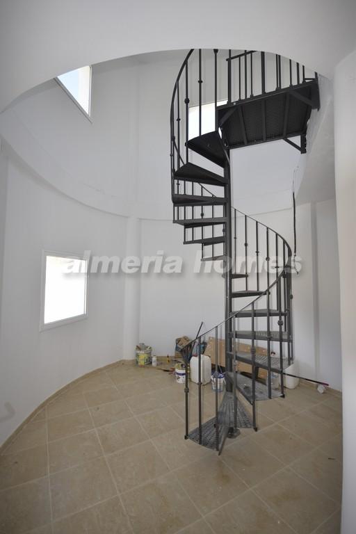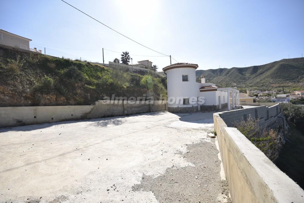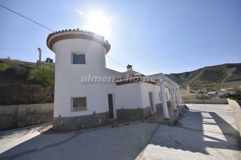 Detached three bedroom villa with a feature tower and a well sized roof terrace for sale in the Arboleas area. With a build size of 119m2, the villa is set in the middle of a flat walled plot of 600m2.