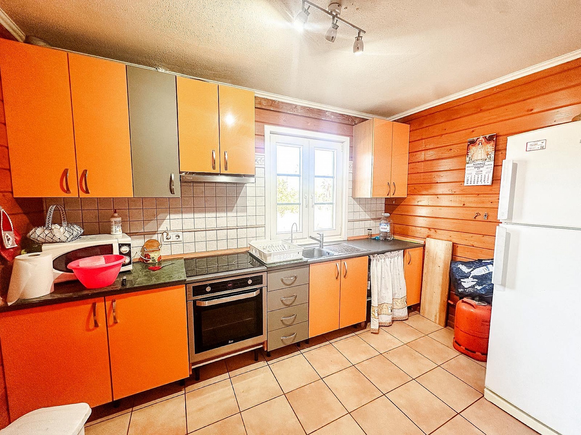 Approaching the house, one is greeted by its inviting façade, crafted from rich, sturdy wood, reminiscent of traditional Russian architecture. The exterior is adorned with intricate detailing, showcasing the craftsmanship that went into its construction.