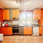Stepping inside, the interior exudes warmth and comfort, with a cozy ambiance that instantly feels like home. The spacious living area features exposed wooden beams overhead, adding to the rustic charm of the space. Large windows frame panoramic views of the surrounding mountains, allowing natural light to flood the rooms and creating a seamless connection with the breathtaking landscape.