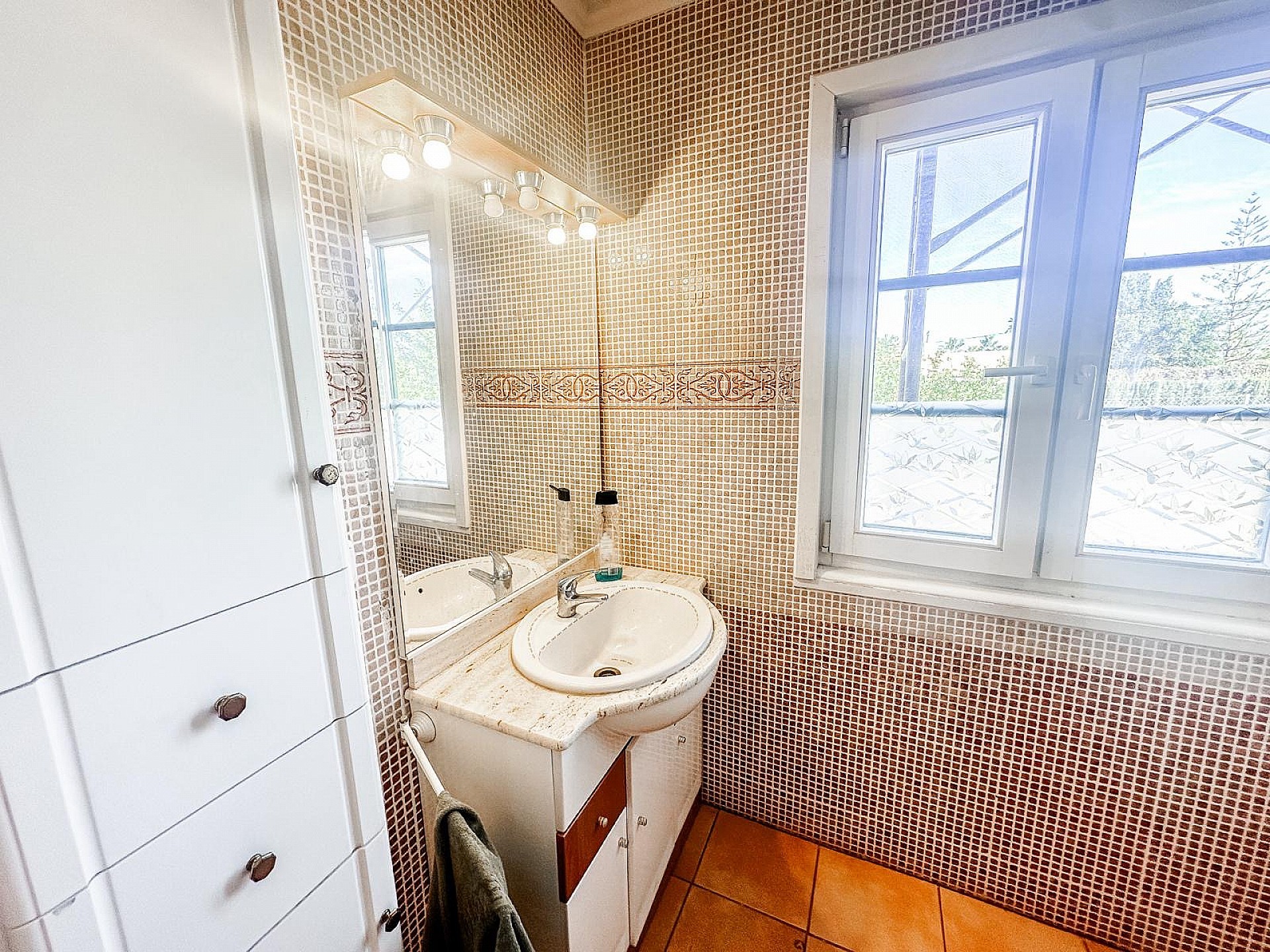 The house boasts three bedrooms, providing ample space for rest and relaxation. Each room is thoughtfully designed, with wooden accents and soft, neutral tones creating a soothing atmosphere. Two well-appointed bathrooms offer modern amenities, ensuring convenience and comfort for residents and guests alike.