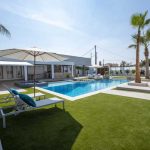 Inside the main villa, all on one level of 190m2, you have a very large lounge and dining room. The independent kitchen is fully fitted and comes with the top quality appliances and there is a fully fitted laundry room as well. The 4 spacious bedrooms of the villa have fitted wardrobes with the master bedroom being en-suite with Jacuzzi bath. Also on this floor are 2 further fitted bathrooms. Upstairs there is a mezzanine level ideal as another chillout area or the perfect office space, doors lead out to the solarium.