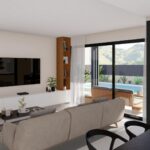 The beautiful 1 level villa has 3 bedrooms, 3 bathrooms, open plan kitchen with living area, private gardens with the pool and parking space.