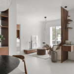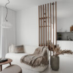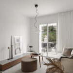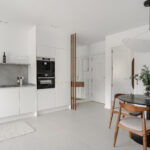 The outdoor lounge and dining area provide the perfect setting to unwind and savor the delightful weather. Each room in the apartment is thoughtfully designed to maximize space and cultivate a cozy atmosphere. The Scandinavian interior infuses the space with a sense of warmth and simplicity.