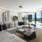 Each room reflects a polished, contemporary aesthetic with refined finishes and large windows that frame unobstructed views of the Mediterranean Sea. The thoughtful layout maximizes