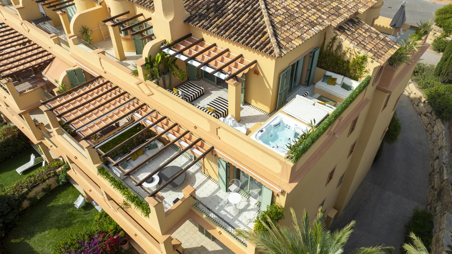 Discover a beautifully curated duplex penthouse located in the prestigious Four Seasons community of Los Flamingos, just steps from the world-renowned Villa Padierna Golf & Hotel Resort. Set within a secure, tranquil, and impeccably maintained urbanization, this residence offers a perfect blend of privacy, luxury, and convenience—only 15 minutes from both Puerto Banús and Estepona.