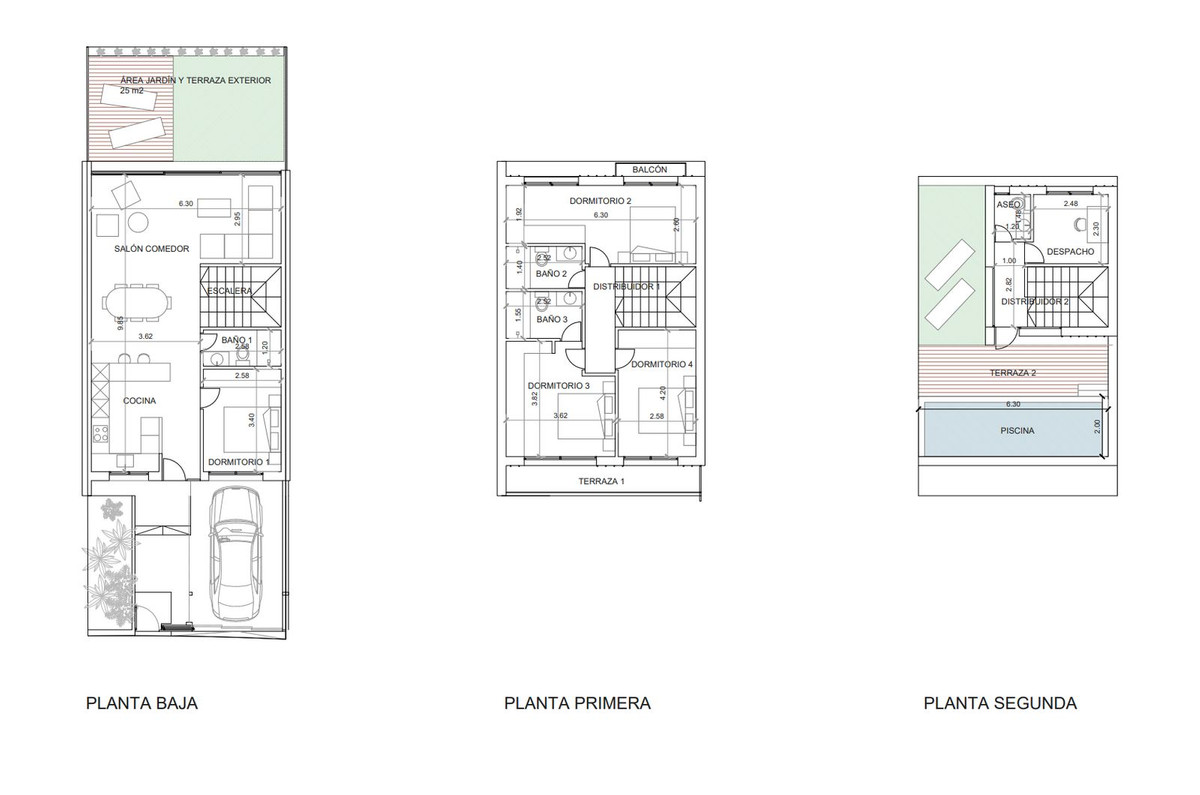The parcel is currently divided into three individual 800m² plots, offering flexibility for phased resale or future development. Each plot allows construction across three levels, supporting single-family villa projects once the surrounding development progresses.