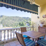 Spread over two levels, the property offers three bright bedrooms and two bathrooms upstairs, along with a terrace boasting panoramic views over the valley and mountains.