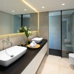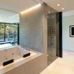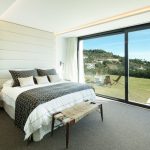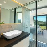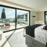 Descending to the lower level, you'll find three generously sized bedrooms, a well-equipped gym, a convenient laundry room, and a luxurious spa. Each bedroom boasts sweeping sea views, expansive floor-to-ceiling windows, direct garden access, and a private en-suite bathroom.