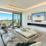 Perched in the prestigious gated community of El Herrojo within La Quinta, this is a lavish, contemporary villa boasting captivating panoramic sea views. This residence showcases a sophisticated open-plan design, complete with soaring ceilings, expansive floor-to-ceiling windows, and cutting-edge interior elements for a sleek and modern atmosphere. The entertainment level, featuring a wine cellar and a playroom with a TV area, adds a spectacular touch. Multiple chill-out zones invite year-round relaxation under the sun. With its exceptional design, enviable location, and opulent amenities, this residence offers an exclusive, modern lifestyle near top-notch facilities and elite golf courses.