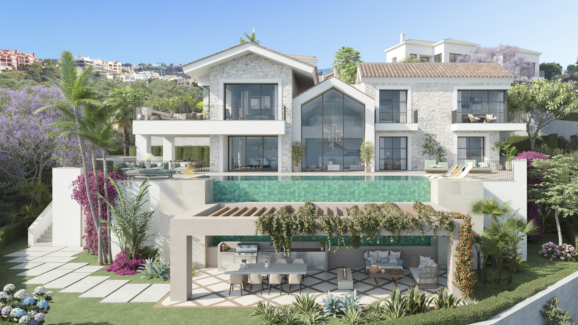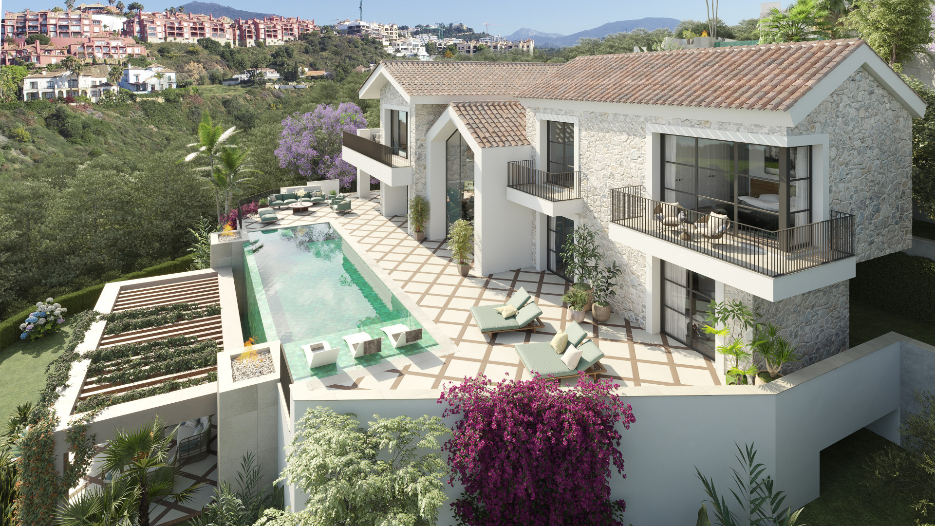 Step into a trio of hacienda-style villas nestled within the heart of The Hills, a renowned gated community in La Quinta. This endeavor presents grandiose residences, graced with sweeping sea views, set in one of Benahavis's most exclusive location. The properties showcase a captivating architecture, enriched with rustic Mediterranean accents, promising an enchanting lifestyle in one of Europe's most coveted destinations. This treasured community encompasses three villas, each meticulously envisioned and crafted by Cogitari Homes. These abodes have been thoughtfully designed to maximize both space and natural light, presenting an intelligent layout for an elevated quality of life.