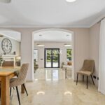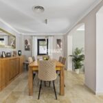Located in the exclusive area of Paraiso Alto, between the sought-after towns of Marbella and Estepona, this magnificent villa is a perfect fusion between traditional Andalusian style charm and modern sophistication. The architecture, with its whitewashed walls and tiled roofs, evokes the cosy and serene character of typical Andalusian houses, while the surroundings, surrounded by lush greenery, bring a sense of peace and privacy that makes this property a real retreat. The exterior of the villa is simply stunning. The pool, lined with iridescent mosaics that sparkle in the sun, is the center of attention of the outdoor area. Next to it, a large and comfortable chill-out area offers the ideal place to relax, enjoy the Mediterranean climate and share unforgettable moments with family and friends. The whole complex has been recently renovated with exquisite taste and meticulous attention to every detail, achieving a harmonious fusion between tradition and modernity. The interiors stand out for their spaciousness and, above all, for the extraordinary luminosity that floods each room, thanks to the large windows that allow natural light to enter throughout the day. On the ground floor, you will find a spacious and elegant open-concept living-dining room that flows into the terraces and garden, effortlessly integrating the interior with the wonderful outdoor spaces. The modern and fully equipped kitchen has been designed with functionality in mind without sacrificing style. In addition, on this floor we find a practical laundry room and a bedroom with an en-suite bathroom, perfect for guests or for those who prefer to stay on the main floor. Going up to the second floor, the villa offers three additional spacious bedrooms, all of which are full of light and designed for maximum comfort. Two bathrooms, elegantly renovated, complement this area, along with a spectacular terrace from which you can enjoy stunning panoramic views, ideal for appreciating the sunsets or simply relaxing outdoors. The fifth bedroom, which has its own separate entrance, is located in the garden area. This space, separated from the rest of the house, ensures privacy and comfort for guests, making it an ideal accommodation for extended visits or even as a separate workspace or study. Paraiso Alto is a privileged area not only for the beauty of its surroundings, but also for the number of activities and services nearby. Golf lovers will be pleased to know that a famous course designed by golf legend Gary Player is at their disposal, making this area a paradise for golf enthusiasts. Just a 1-minute drive away, you will find the Bel Air Tennis and Paddle Club, a top-notch club where you can enjoy a wide range of sports activities. Likewise, the Bel Air shopping area, with a full offer including supermarkets, pharmacy, restaurants and a health center, is only 3 minutes away, adding convenience to daily life in this exclusive property. Don't miss the opportunity to discover this unique property that combines charm, elegance and functionality in an unbeatable environment. Contact us today to make an appointment and experience in person the beauty and comfort that this extraordinary villa has to offer.
