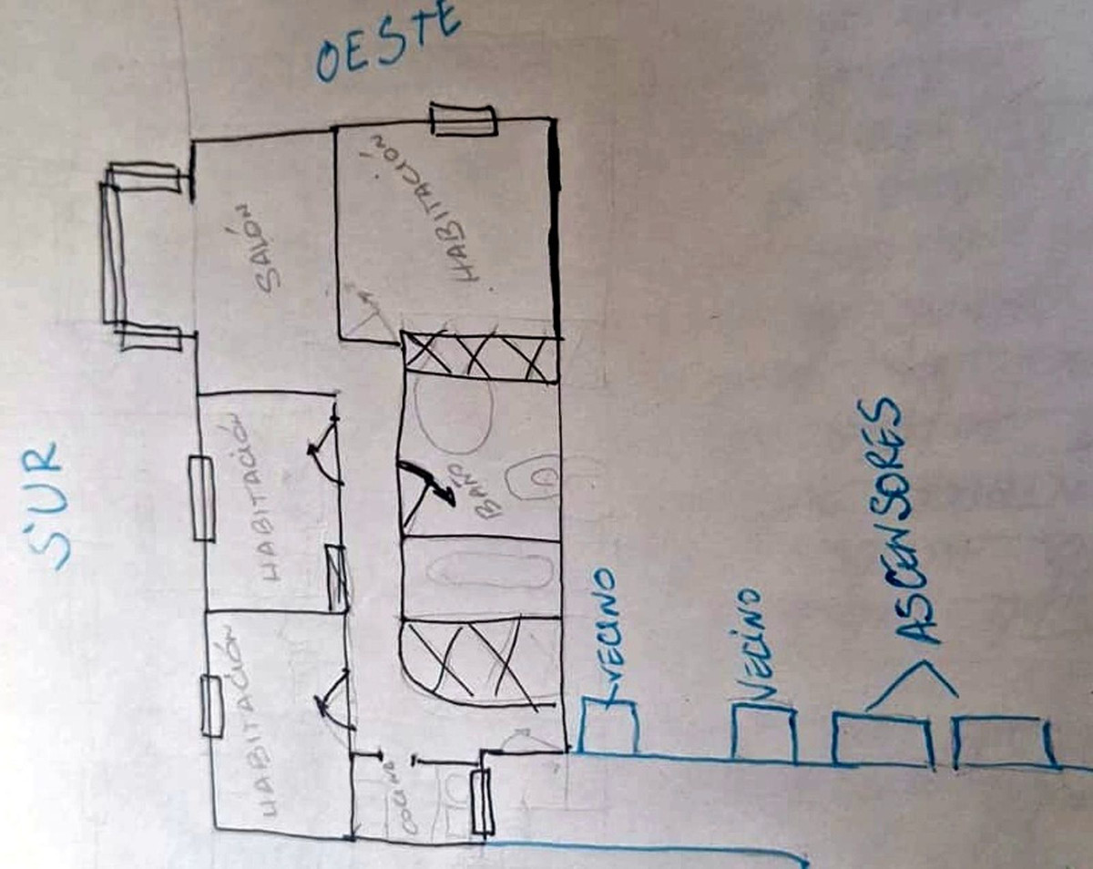 Next to it is the entrance to the living room, and at the end of this corridor is the main bedroom.