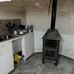 The cave has 2 bedrooms, living room, bathroom, kitchen, outside store room, patio area.