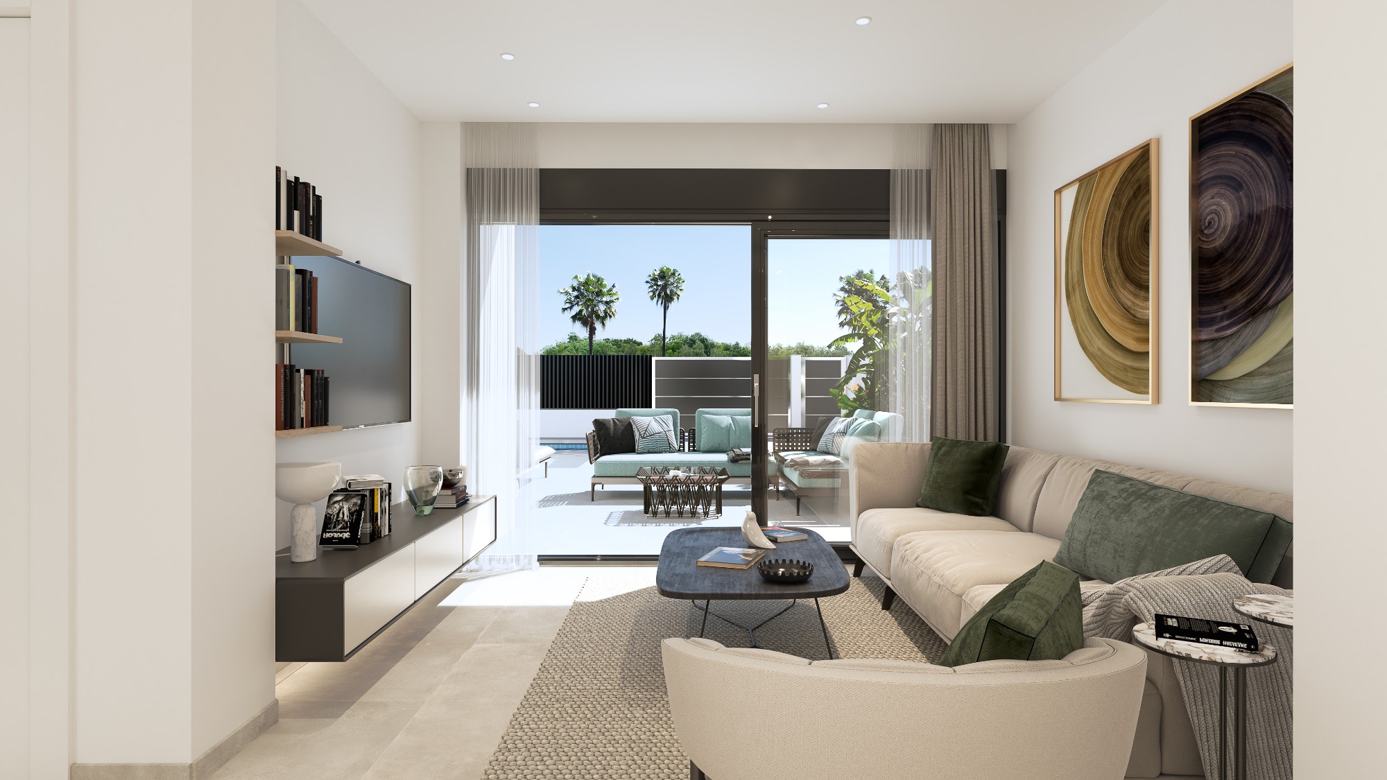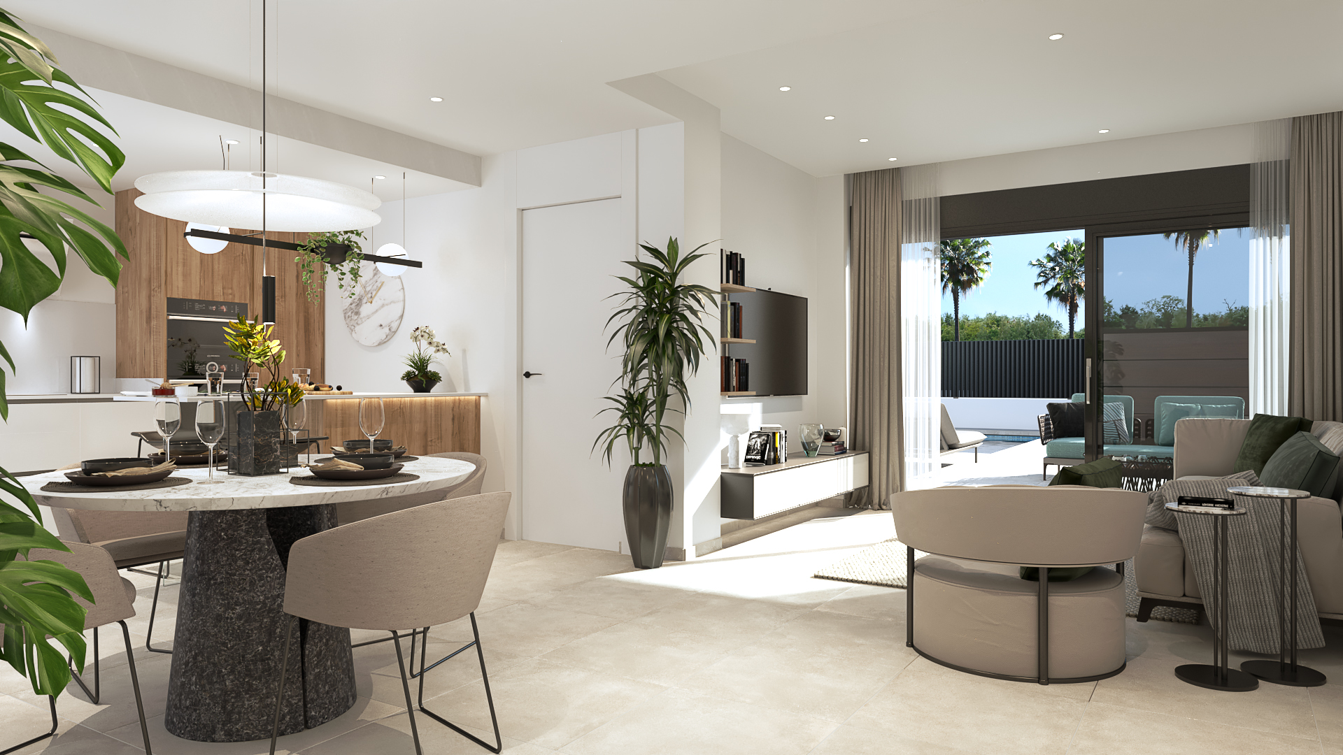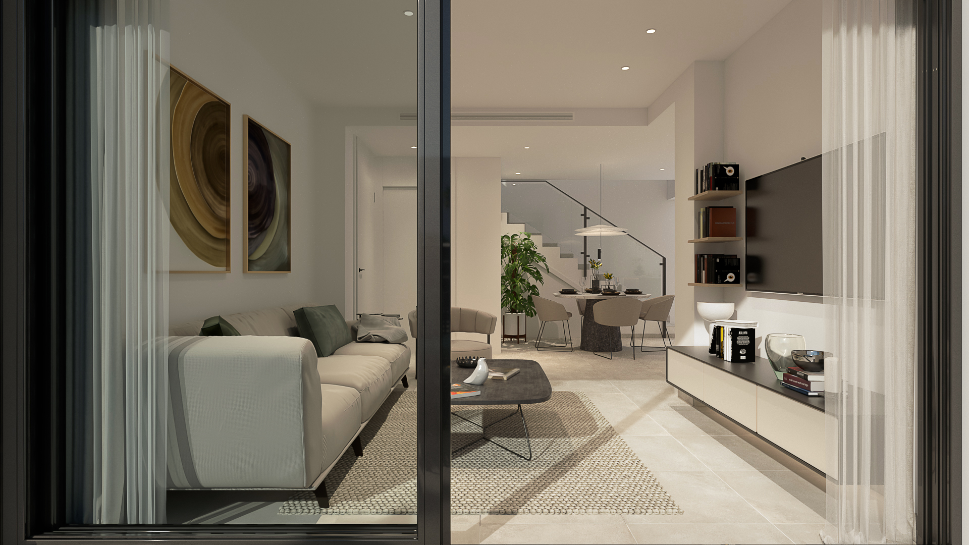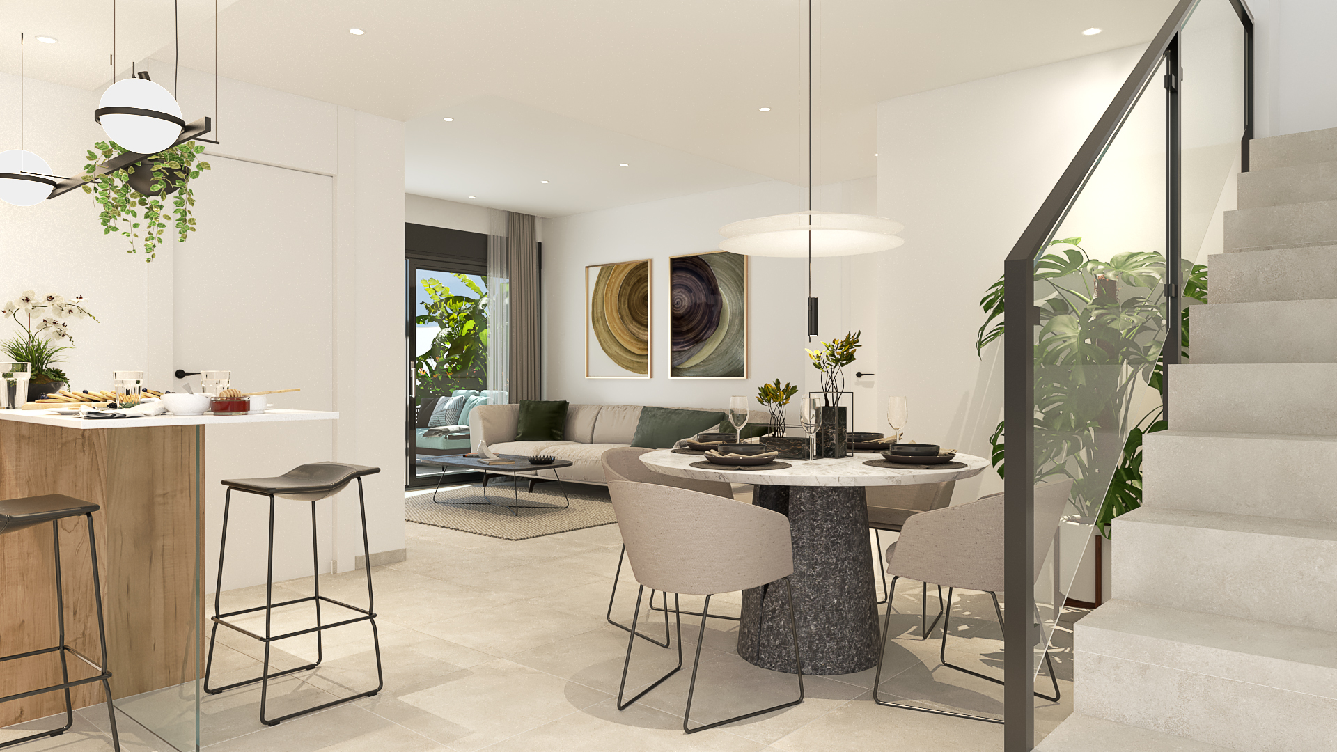 These villas will be built on a plot of 210m2 and will consist of a ground floor (Planta Baja of 76.21 m2) and a first floor (Planta Primera of 61.50 m2), with above, as previously mentioned, a spacious solarium of 47.50 m2. The project is conveniently located near the La Marquesa golf resort in Quesada and just 8 km (10 minutes drive) from the white beaches of Guardamer del Segura.