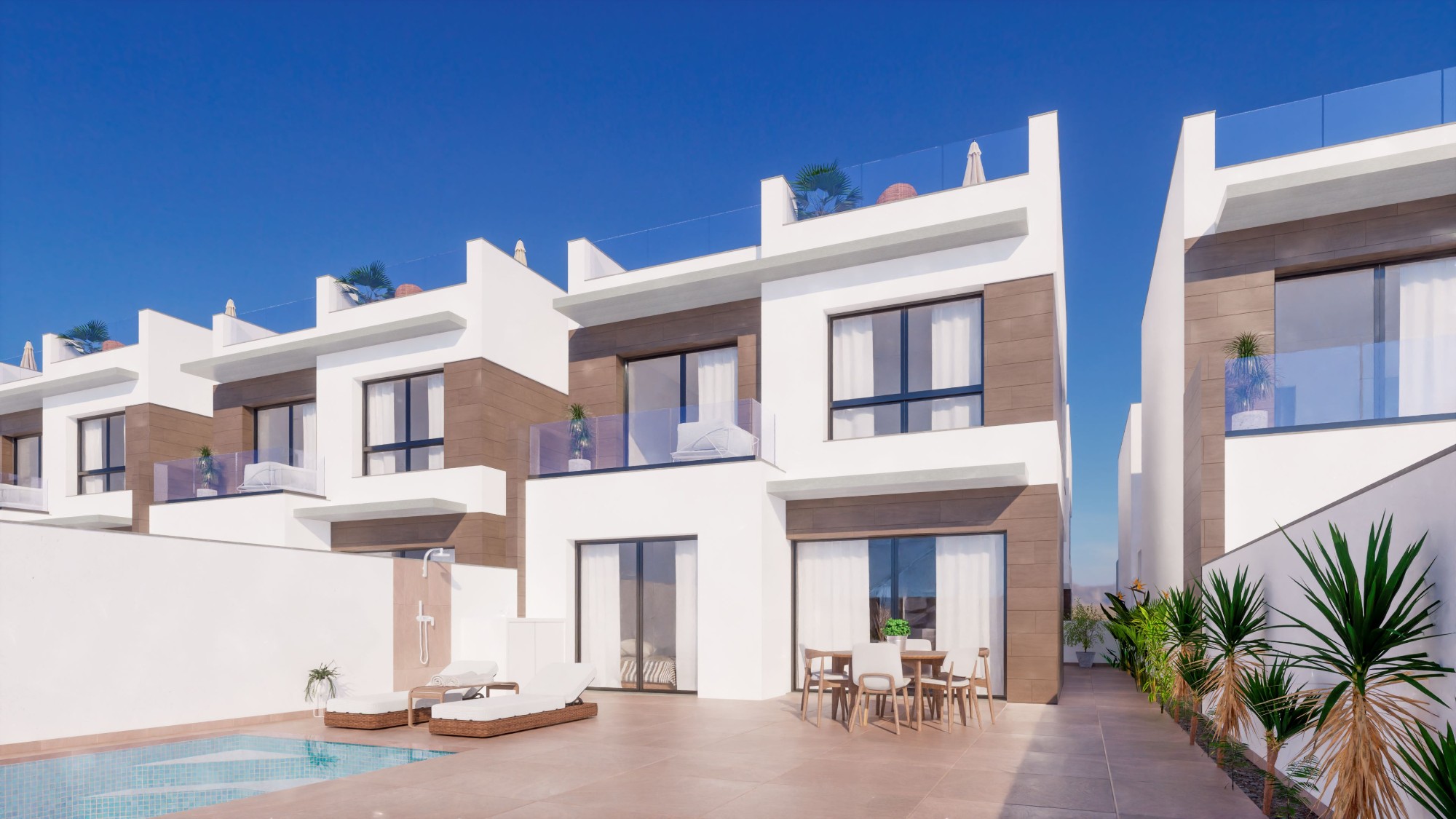 SEMI-DETACHED VILLAS WITH 3 BEDROOMS, 3 BATHROOMS, SOLARIUM AND SWIMMING POOL IN BENIJOFAR (ALICANTE)