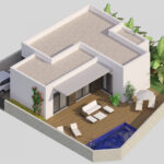 NEW BUILD MODERN VILLAS IN BENIJOFAR New Build villas located in Benijófar, a privileged area of the Costa Blanca, equipped with all services, 20 minutes from Alicante Airport, near the beautiful beaches of Guardamar and several golf courses. It is a modern style villas consisting of spacious living-dining room with an open-plan kitchen, 2 bedrooms( one of them en-suite) and 2 bathrooms. It also has a private plot with terrace, parking area, private pool, Mediterranean-style garden with great views. The house also has hot and cold air conditioning, video intercom and security door. Benijofar it is a lovely village with a charming church and all services such as supermarkets, pharmacies, banks, restaurants and natural park located very close to the villas. There are several golf courses close by as well as water parks in nearby Rojales and Torrevieja. Benijófar located a few minutes from the N-332 and AP-7. Just 30 minutes from Alicante airport, 10 minutes from the beaches of Guardamar and Torrevieja.