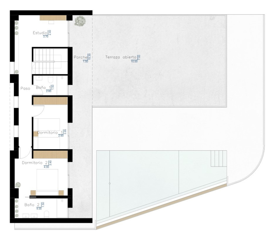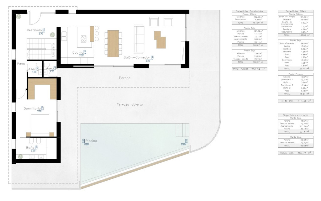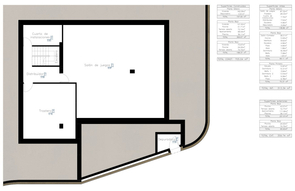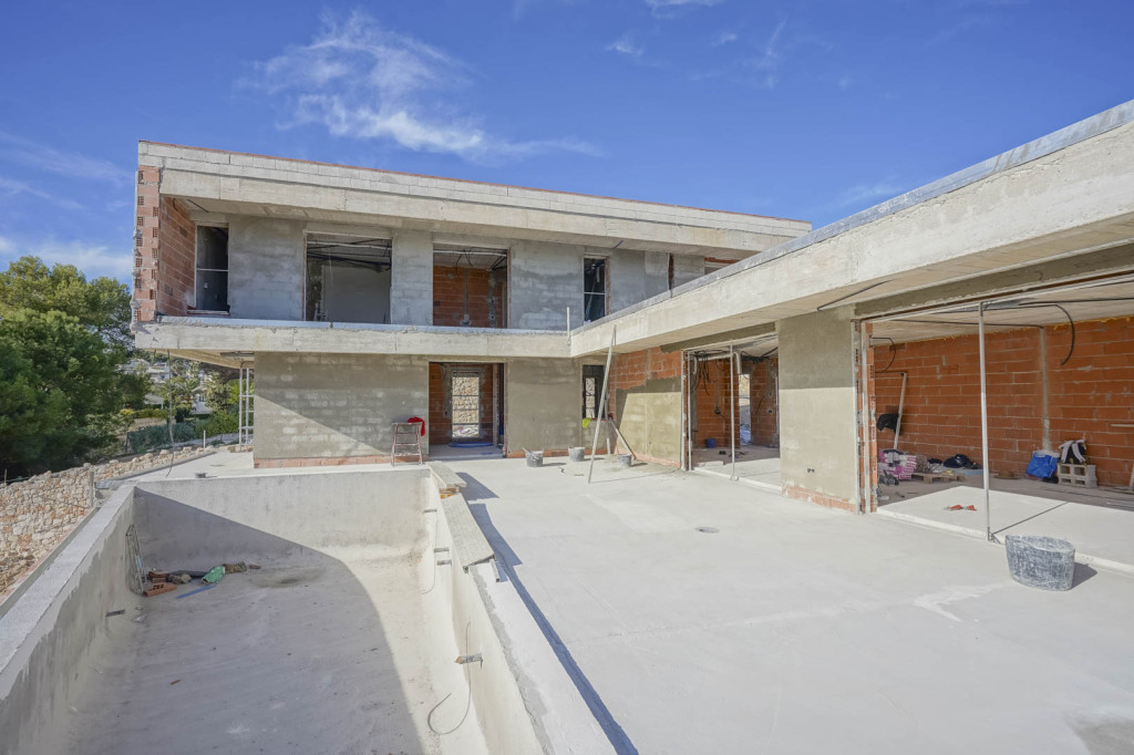 New build project for sale close to La Fustera beach in Benissa! This modern villa will be built on a plot of 1040m2 at walking distance from the beach, bars, restaurants and supermarket. The villa is divided over two floors with sea views from both floors. The ground floor comprises a spacious living-dining room with an open kitchen with a cooking island. From here, there is direct access to the terrace through the sliding windows. In addition, on this floor we also find a double bedroom with an en suite bathroom and a guest toilet. The second floor consists of two double bedrooms, one with an en suite bathroom, a separate bathroom and a further room that can be converted into a 4th bedroom if desired. All rooms on this floor have access to a large communal terrace. In addition, the villa also has a basement floor consisting of a storage room and a room of 87 m2 that can be used as desired. There is also the possibility of creating another bedroom with en suite bathroom in the basement floor. Outside, we find another terrace with a large infinity pool, an outdoor toilet, a garden and a driveway with two parking spaces. The villa is a 15-minute drive from both Moraira and Calpe. Keyready june 2024.