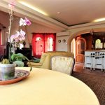 This very spacious villa with sea view is located within walking distance from the sea. The villa is spread over 2 floors and is ideal for Bed and Breakfast. On the top floor is the main house. Here you will find a spacious living room with dining area, a fully equipped kitchen, a guest toilet, a double bedroom, a bathroom and the master bedroom. On the lower floor which is also accessible by stairs from the upper floor are 3 independent fully equipped apartments which can sleep more than 12 people. Besides the spacious terrace with the large pool there is a large covered terrace with bar and professional kitchen which is ideal for holding dinners for large groups. There are also several other seating areas spread over the plot. The villa offers many extras such as a sauna, a Jacuzzi, a second outdoor kitchen, two laundry rooms and a large pond with waterfall. Also, the large plot offers parking for several cars.