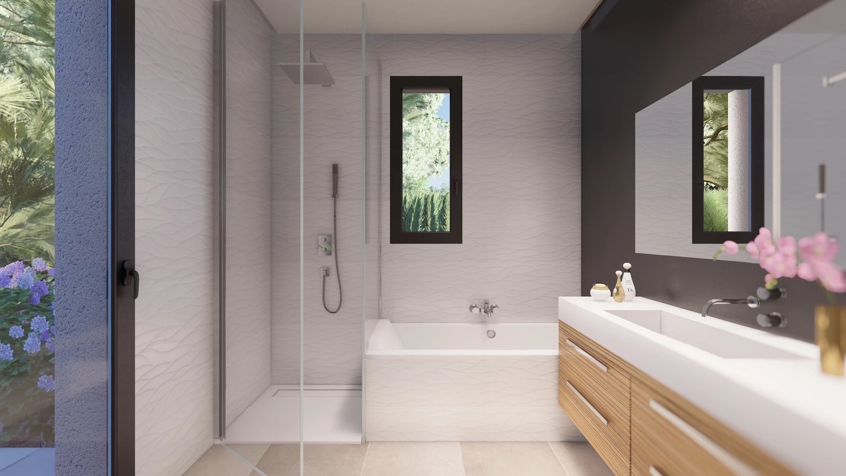 The project offers villas on one level, with 3 bedrooms and 2 bathrooms, built on plots on 800m2. The main living area combines the lounge, dining area and kitchen into an open-plan space, which opens onto a terrace and pool area. The master bedroom has a private bathroom.