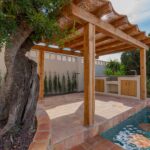 Outside, the villa features a fully landscaped garden with automatic irrigation, multiple terraces, a pergola, barbecue area and a newly built swimming pool with seating area and pre-installation for heating. Parking is available for two cars behind a motorised sliding gate.