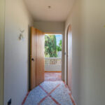 The upper floor comprises an entrance hall with guest toilet, a spacious living area with an open-plan kitchen equipped with BOSCH appliances and a BORA hob with integrated extraction, combined with custom-made cabinetry and porcelain worktops by RAGNO Italia. There are also two bedrooms, each with its own en-suite bathroom, ensuring maximum comfort and privacy. The lower floor houses a separate bedroom or studio with en-suite bathroom and the option to install a kitchenette, making it ideal as a guest accommodation. Throughout the living areas and bedrooms, fixed furniture and accents in MATTEO BRIONNI clay, solid oak doors and built-in wardrobes create a warm, natural atmosphere. The bathrooms are stylishly finished with high-quality sanitary fittings. Polished concrete floors run throughout the interior of the property, while terracotta tiles are used outdoors.
