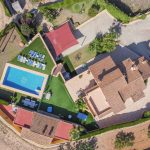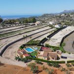 This fantastic villa is situated on a plot of up to 11,000 m2 and offers beautiful open views. The property consists of a very large villa consisting of three floors with the ground and second floor being a completely independent dwelling In addition, there is also a spacious guest house in the garden and a studio on the second floor. A very long driveway leads up to the villa. The first floor consists of a fully equipped kitchen with a storage room, a dining room with a stove, a large living room, three double bedrooms, two bathrooms and a storage room where all the facilities are installed for a sauna. In front of the first floor is a beautiful landscaped terrace. The second floor consists of a covered terrace, a spacious living-dining room, a kitchen, a laundry room, a double bedroom with an en suite bathroom and two double bedrooms with a shared bathroom. Also on this level is the 6 x 12 swimming pool with sun terrace and outdoor shower. By the pool is also a large outdoor kitchen with a covered terrace. On either side is an additional room with large windows that can be used as a lounge, office, utility room, gym, etc. There is also an outdoor bathroom. The pool and stairs are cordoned off with gates which makes it ideal for small children or pets. On the third floor is a spacious terrace and a separate apartment consisting of a kitchen with dining area, a double bedroom and a bathroom. Privately located in the beautiful Mediterranean garden about 100 m from the main house is a nice guest house consisting of a kitchen, a living-dining room, a double bedroom and a renovated bathroom. In addition, the villa has radiators, air conditioning, built-in wardrobes, awnings, shutters and connection to the electricity network. There is also a well that is functional. There is also a double garage, a single garage, a carport and a wine cellar. About 5500 m2 is fenced off and landscaped with palm trees, grass gardens and terraces. The remaining land of about 6000 m2 currently consists partly of orange trees and partly of tillable land. The size of the plot makes it ideal for those looking for a villa with space to keep animals. The villa has a rental license and is located in a rural area just 3 km from the coast of Benissa where you can find numerous idyllic coves. There are beautiful open views of the interior and the magnificent Sierra de Bernia. Both the center of Benissa and that of Moraira can be reached in 10 minutes. The center of Calpe can be reached in 15 minutes. Video available on request. Do not hesitate any longer and visit this fantastic villa!