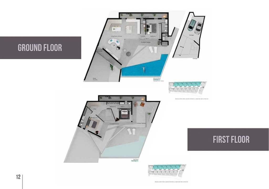 This beautiful unique new development consists of 16 semi-detached villas. The villas will all be delivered at the same time in mid-2024. The villa is distributed over 3 floors. On the general living areas there is a spacious lounge with dining area, a fully equipped kitchen, a guest toilet and the master bedroom with dressing area and bathroom en suite. On the first floor there are 2 spacious double bedrooms, each with their own bathroom on suite. In addition, there is the possibility to realize a fourth double bedroom on the general living area if desired. In the basement of the villa is the garage which is suitable for 2 cars, a storage room and a room which can be used as a gym, for example. All villas have a beautiful spacious roof terrace from where you can enjoy the breathtaking views that these villas have to offer.