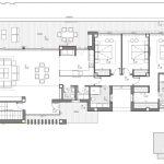 This villa is built on two floors, the main entrance is on the top floor, with two clearly defined wings. On the right hand side, we have the rest area, where the 3 bedrooms are located. One of the bedrooms has a large walk-in-closet and an en-suite bathroom; the other two bedrooms have a shared bathroom and spacious wardrobes. All of the bedrooms have direct access to the terrace and the sea views. In the other wing, is the day area, with a kitchen,which joins with the dining room and the exterior porch, the living room, a guest toilet, a wash room, etc.