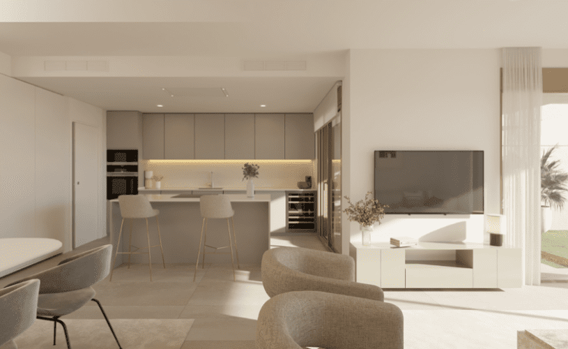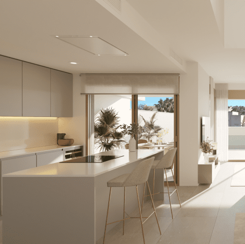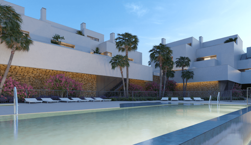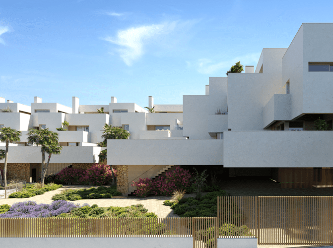 In the surrounding area, you will find: ' La Albufereta beach, which is small and isolated, is very popular. The urban beach of Postiguet, in the heart of the city. ' San Juan beach, with more than 7 kilometers of sand and transparent waters. ' Without forgetting the multitude of small coves and unexpected nooks and crannies that are sculpted into the profile of Cabo de las Huertas. You can choose a beach to enjoy without having to use your car. You will also find top-class golf courses very close to Arialtis and a marina within walking distance. As for other services, the area has prestigious schools, universities, shops, cultural and leisure facilities. Everything you could want is within a stone's throw of Arialtis. This development is characterized as townhouses in a setting offering all the benefits of the city and the sea.