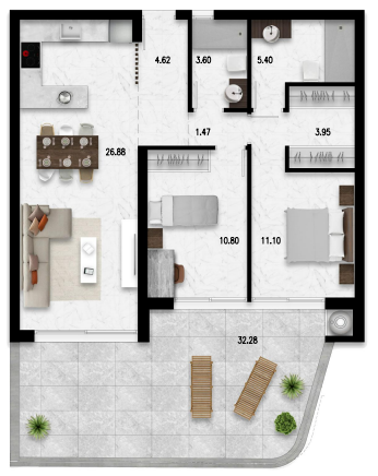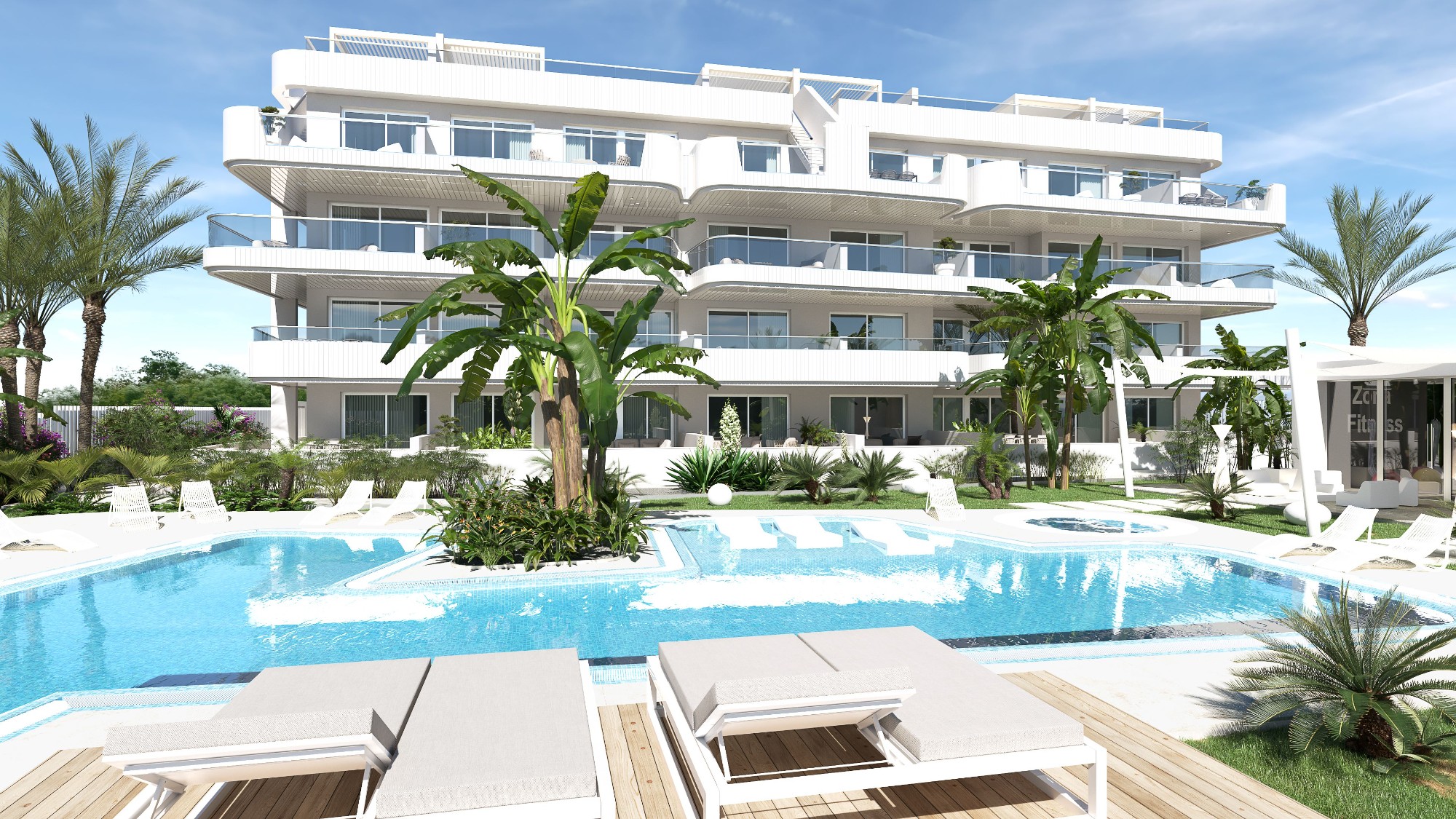 These beautiful second floor apartments with 2 bedrooms, 2 bathrooms and terrace, are part of a unique residence that will consist of 24 apartments, which is located a few minutes from Cabo roig beach. This residence is 5 minutes away from the shopping center (La Zenia) and the location is also ideal for golf enthusiasts. In this beautiful residence you will also find a swimming pool and jacuzzi, a gym and a cozy space for co-working.