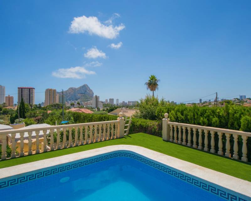 Villa in Calpe in an area very close to the beach and services, Ideal as an investment for rent or to live all year round. The villa consists of 3 bedrooms, 2 bathrooms 1 (en-suite), open and large kitchen, spacious and bright living room with access to the terrace with open views towards the Peñón de Ifach. The villa is on a flat and very sunny plot, with a pool surrounded by terrace, parking,