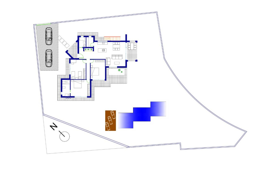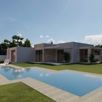 This modern single storey newly built villa is located less than 10 minutes from the sea. The villa offers a spacious lounge with dining area, a fully fitted modern kitchen, a laundry room, 2 double bedrooms, a bathroom and the master bedroom with en suite bathroom. It also has a partly covered terrace with swimming pool.